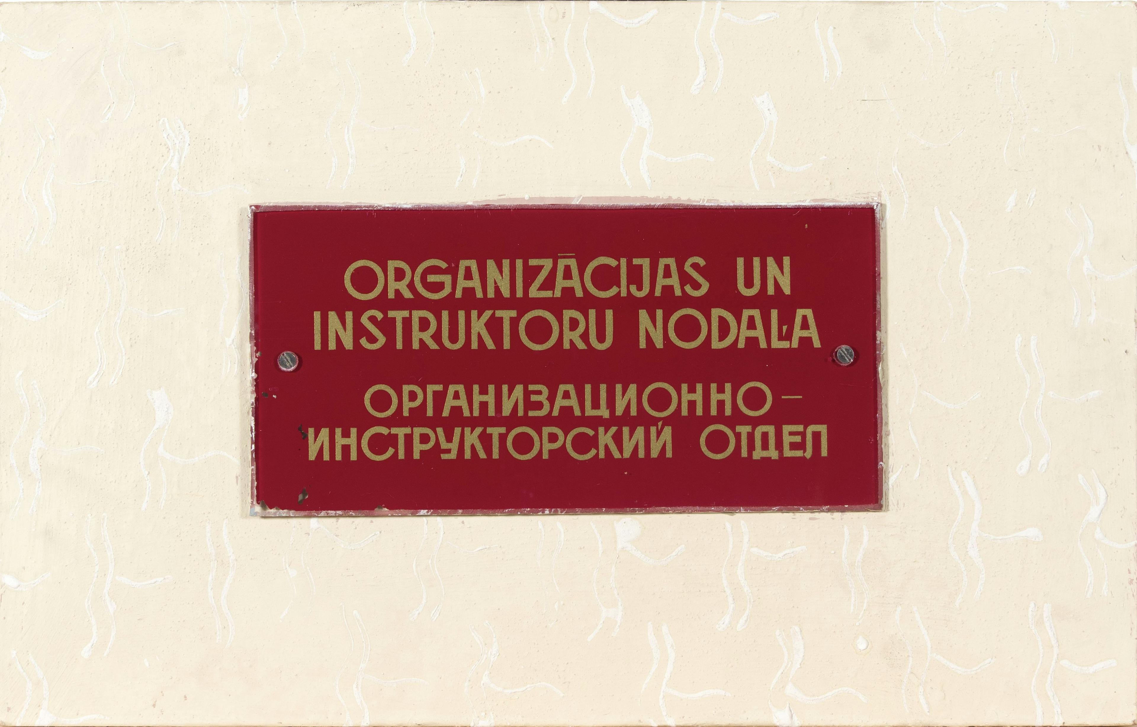 Koks, finieris, kartons, stikls, krīta krāsa, nitro krāsa, skrūves. 35 x 55 x 2,5 cm.