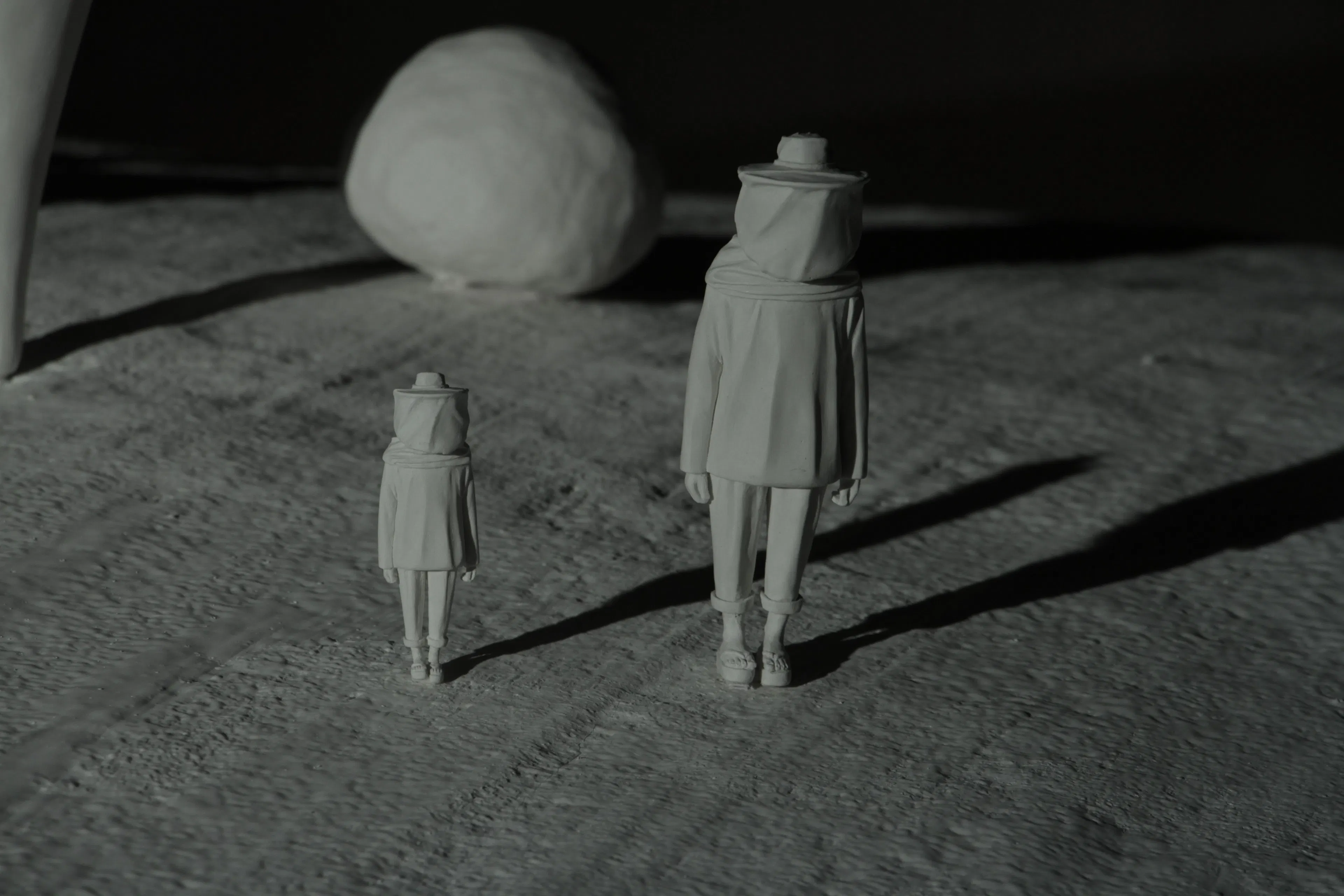 Skulptūra: acrylic one; pamatne: metāla režģis, papīrs, acrylic one; podests: koka statīvi, motors. Kopējais izmērs: 123 x 230 x 180 cm.
